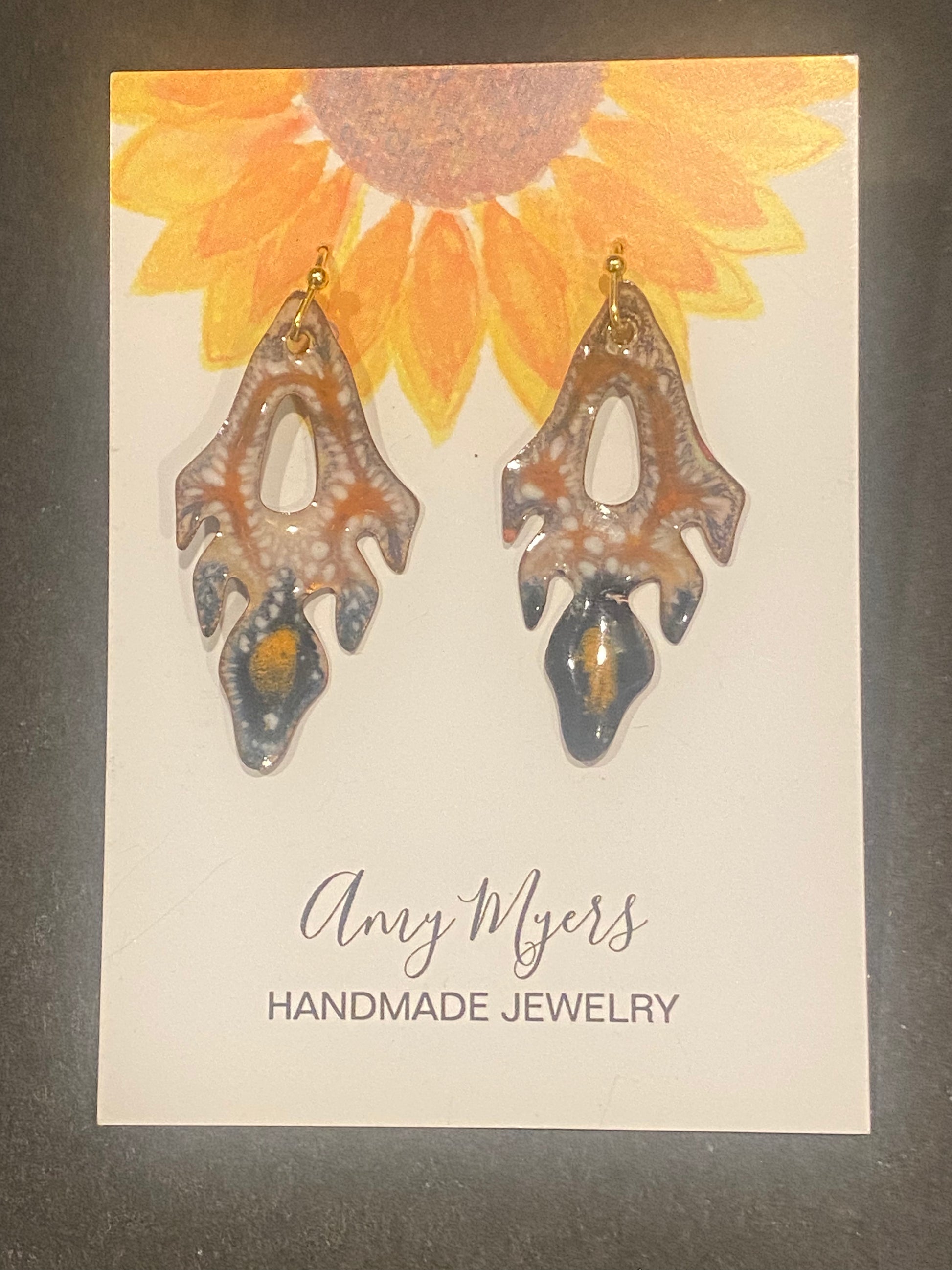 Bold and lightweight, these freeform enamel earrings feature earthy tones with gold accents. Perfect for adding a statement to any look.
