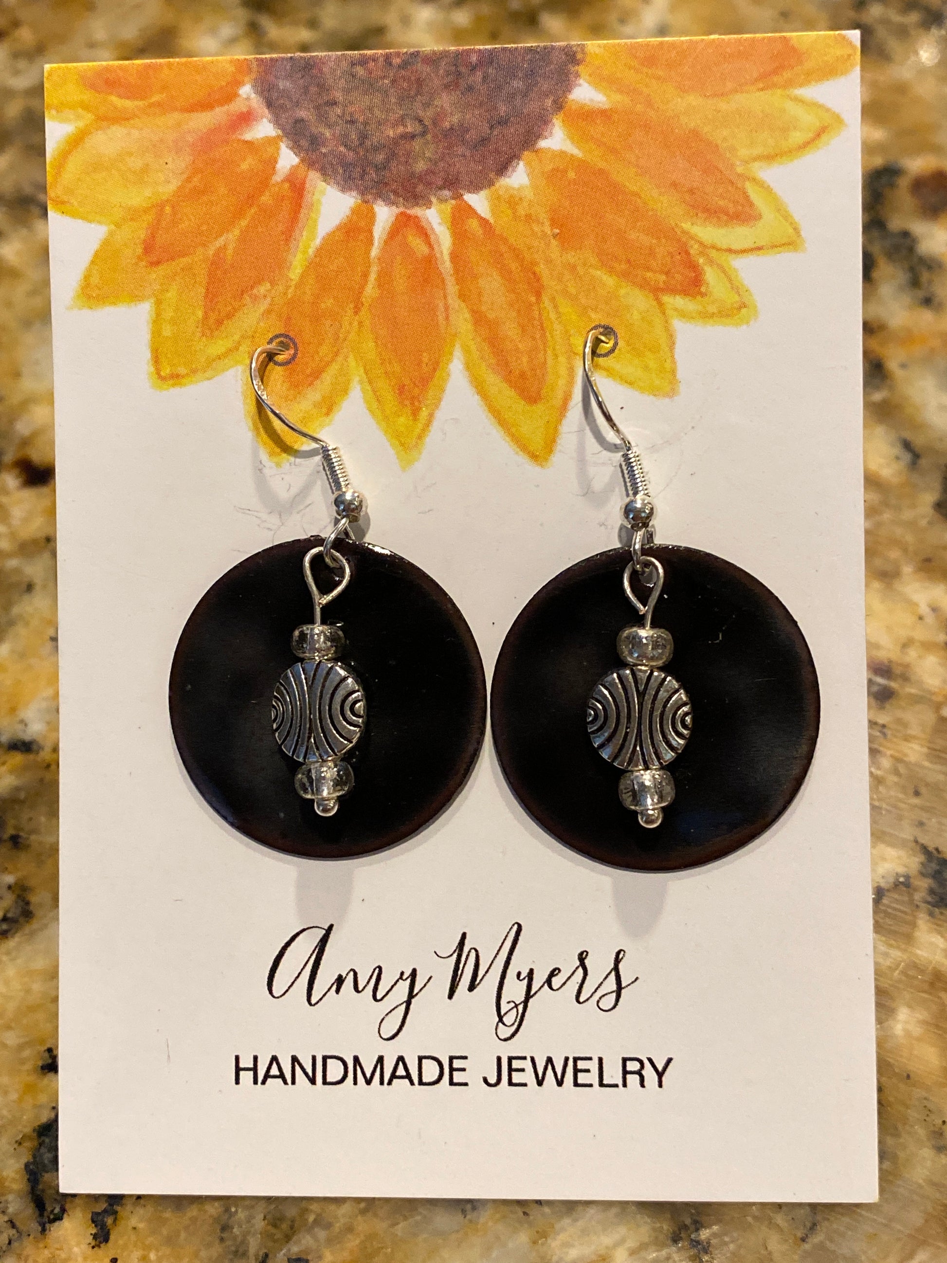 Deep black enamel discs paired with intricate silver-tone beads create a bold, elegant look. Perfect for any outfit, from casual to formal.